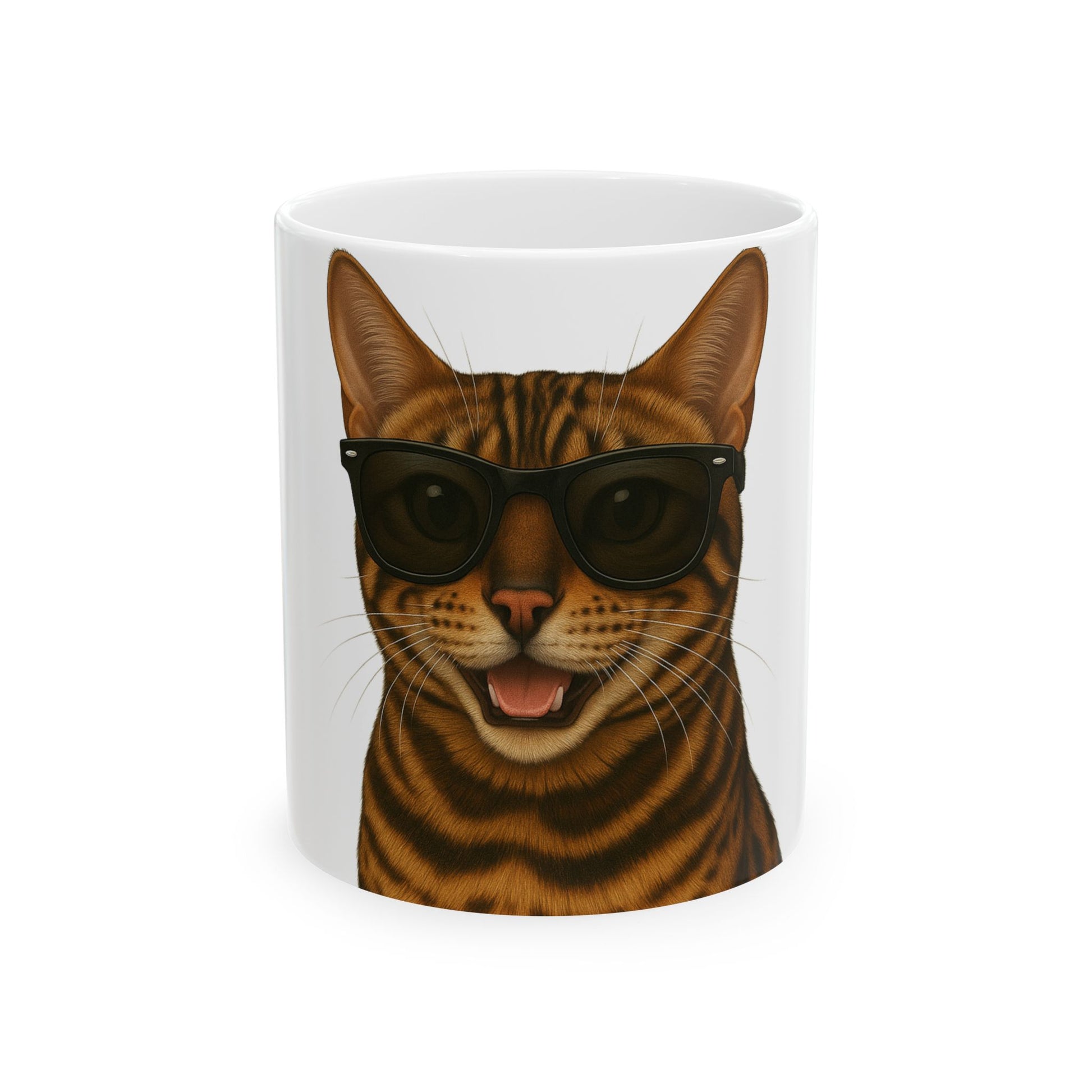 Start your morning with a smile! This adorable ceramic mug features a Bengal Cat wearing stylish sunglasses — perfect for cat lovers who appreciate a touch of humor with their coffee or tea.