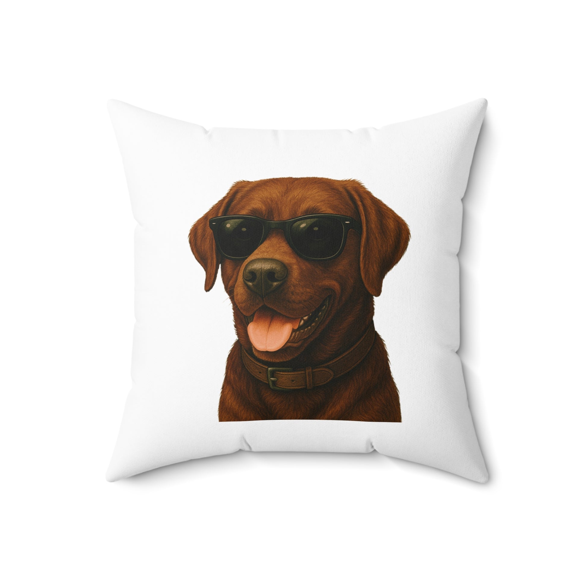 Add some personality to your home with this adorable Brown Labrador Retriever throw pillow! Featuring a fun illustrated Brown Labrador Retriever portrait wearing stylish sunglasses, this pillow is a must-have for dog lovers.
