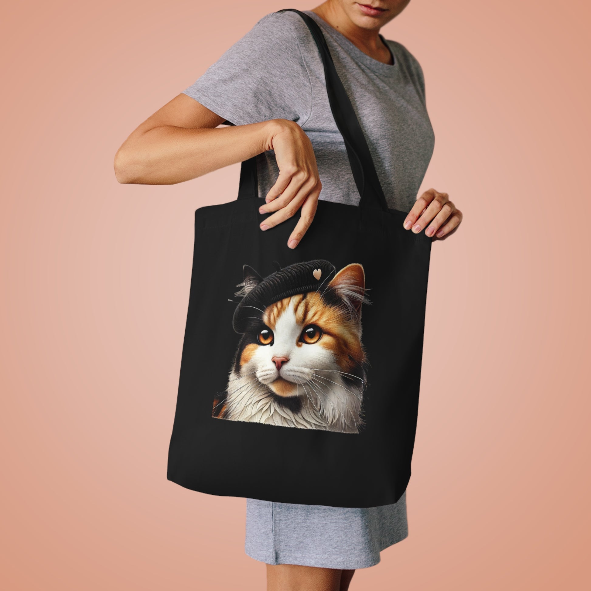 Carry your love for Calico Cats everywhere with this stylish cotton tote bag! Featuring an adorable Calico Cat rocking a charming beret, perfect for shopping, errands, or as an everyday bag.