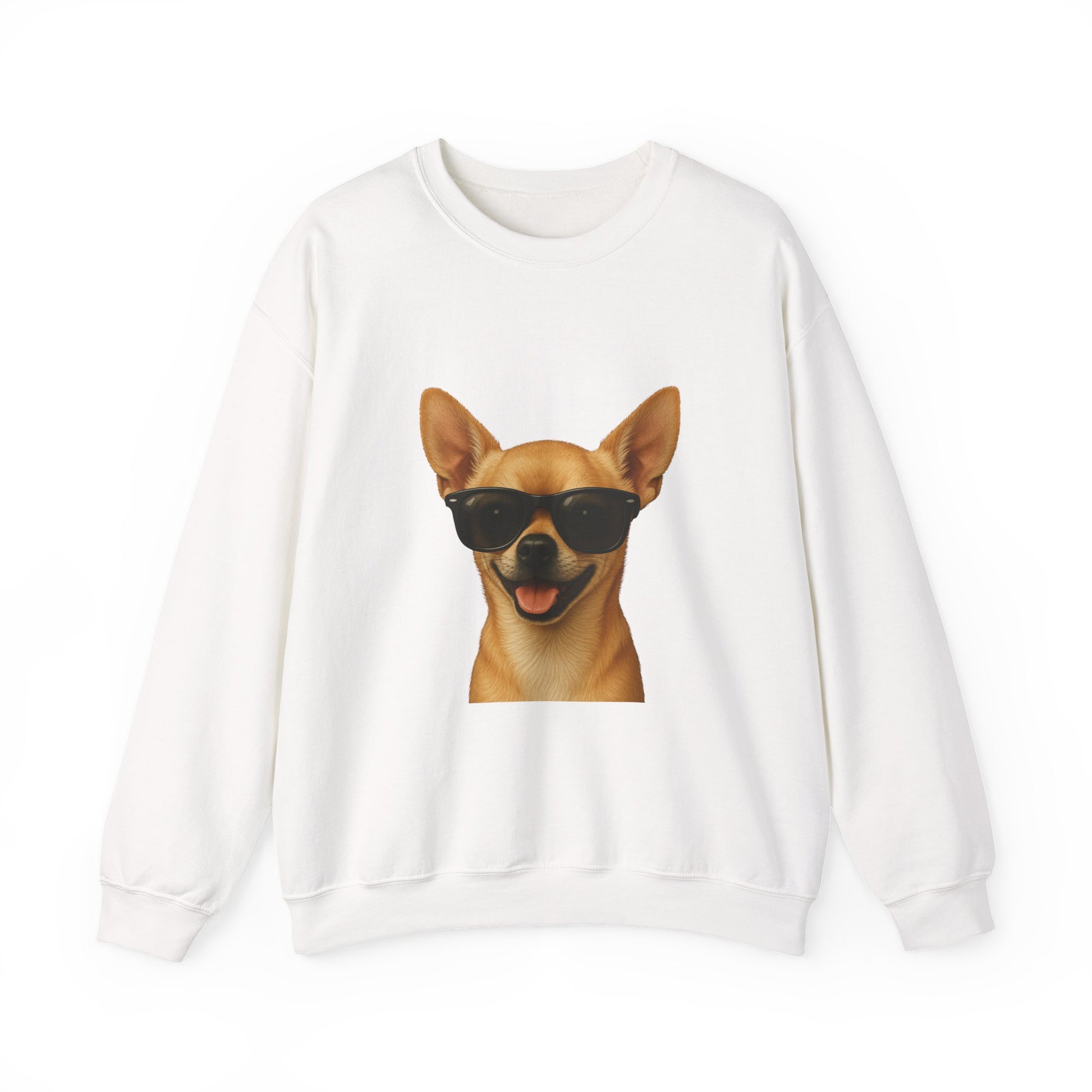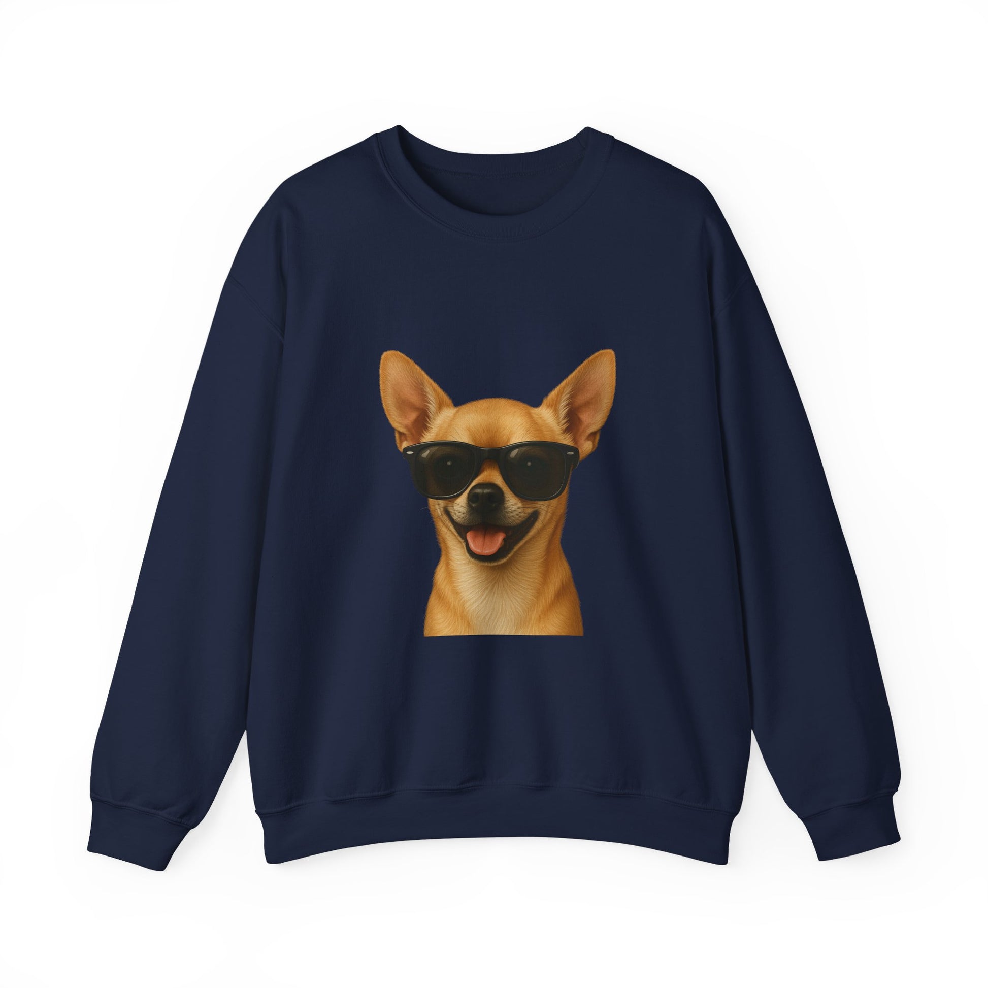 Stay cozy and stylish with this Chihuahua crewneck sweatshirt! Featuring an adorable illustrated Chihuahua portrait wearing cool sunglasses, this sweatshirt is perfect for dog lovers who want comfort with personality.