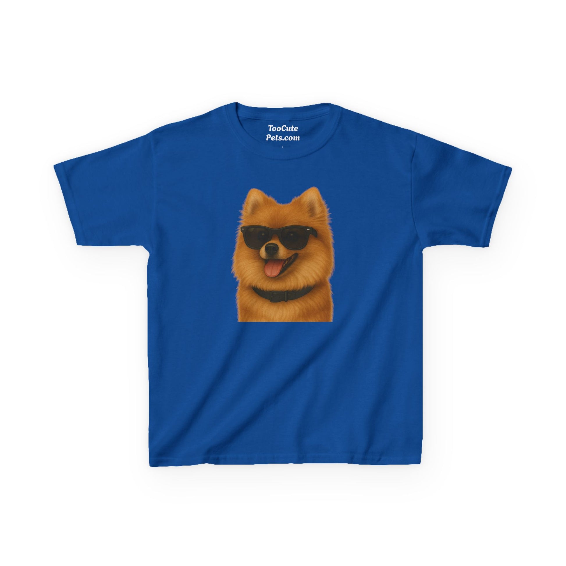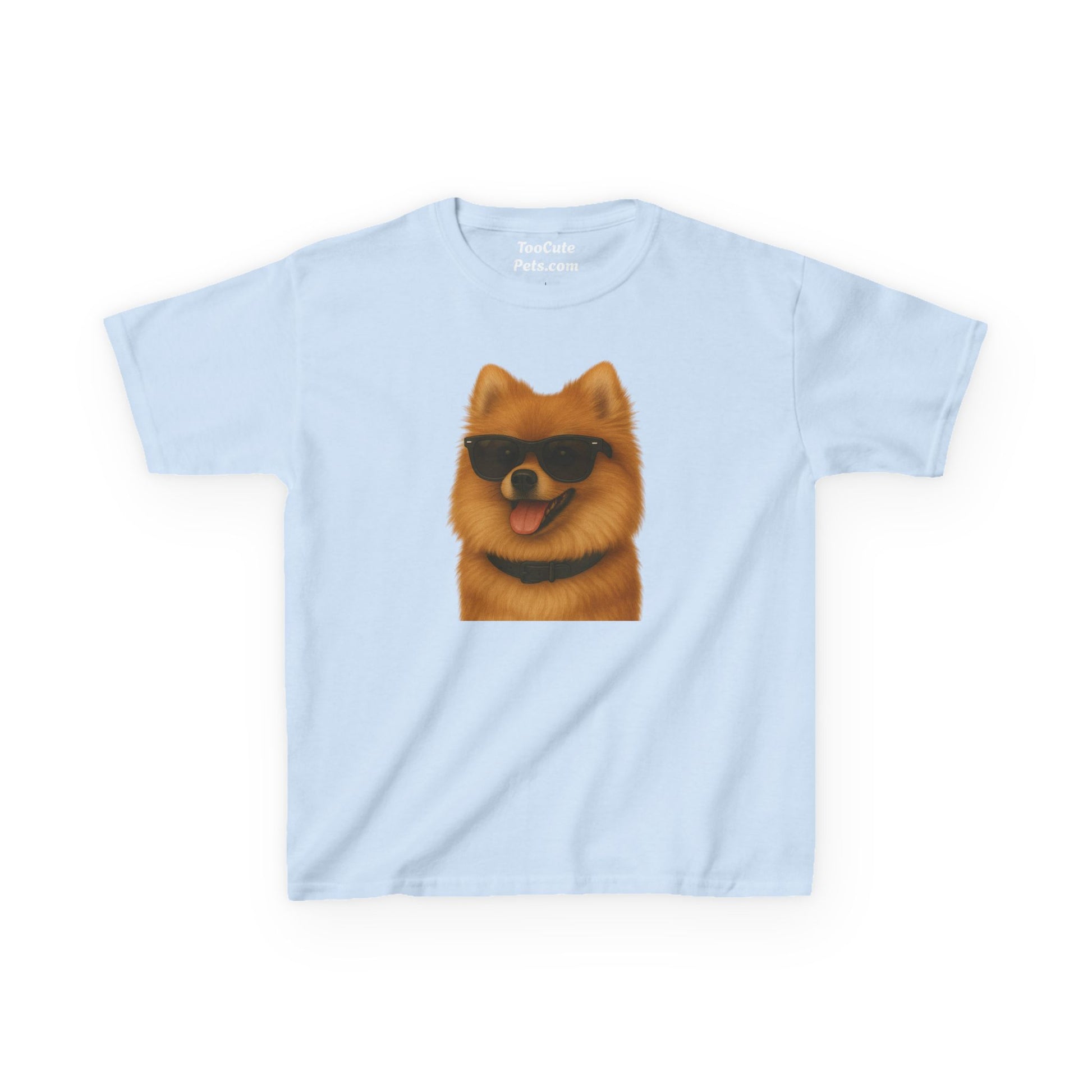 This Pomeranian T-shirt with a portrait of the dog wearing sunglasses exudes a cool and playful vibe, perfect for casual wear and dog lovers. Ideal for kids, this T-shirt is great for everyday wear, casual outings, and even as a gift for a young dog enthusiast. Relevant for birthdays, holidays, and any casual occasion.