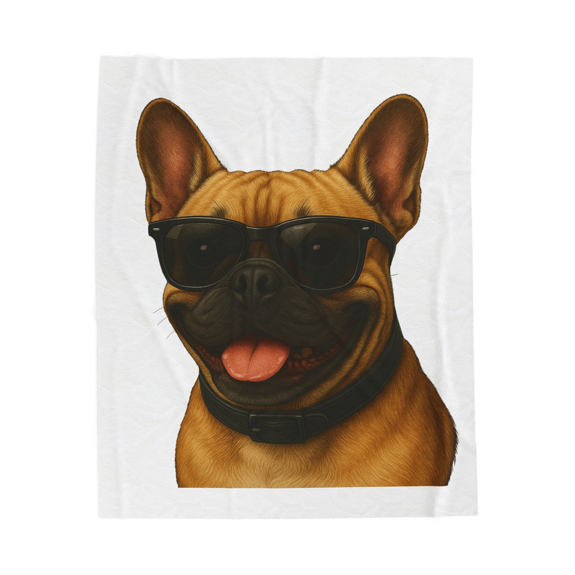 Snuggle up with this cozy French Bulldog sherpa blanket! Featuring a vibrant illustrated French Bulldog portrait wearing cool sunglasses, this blanket combines comfort with dog-lover style.