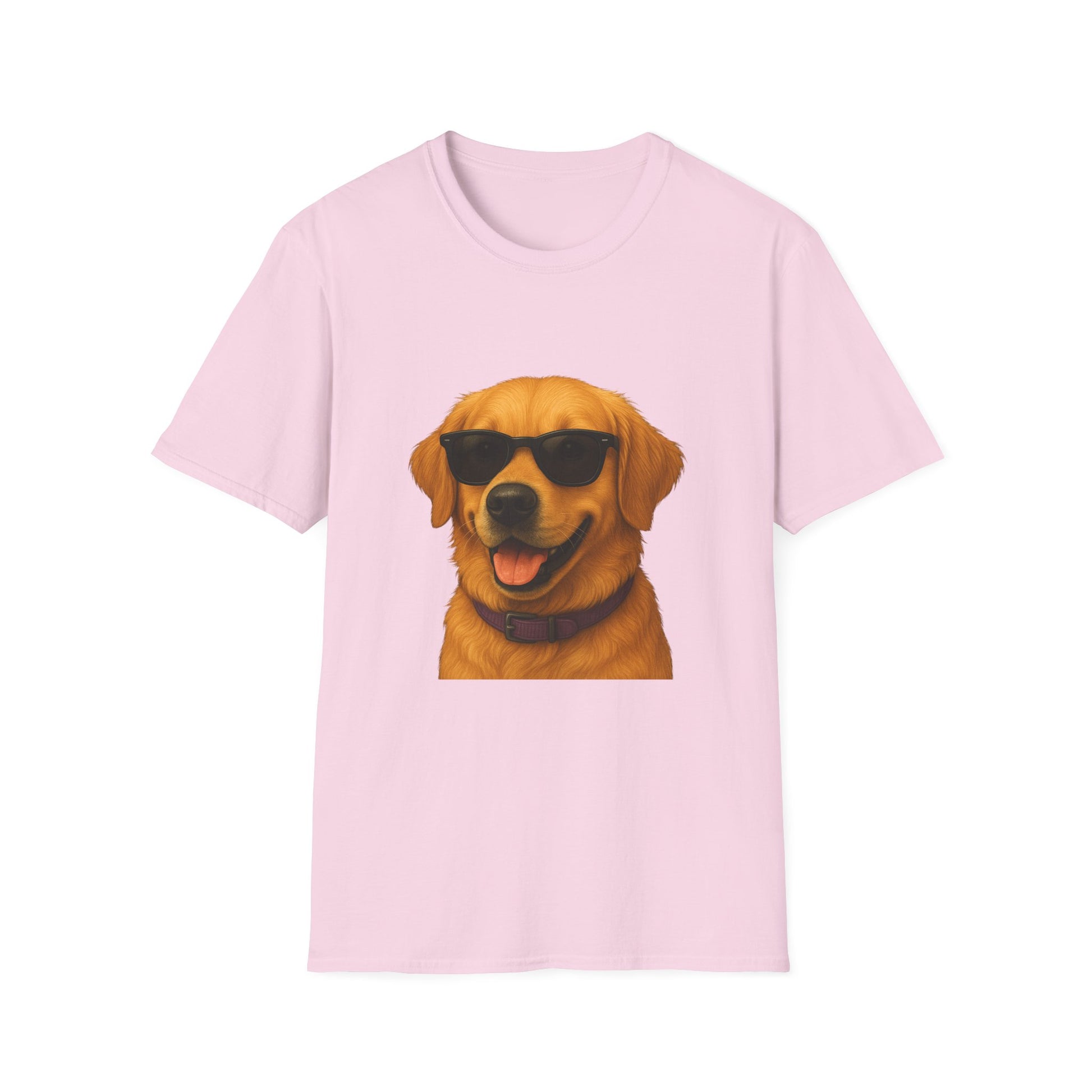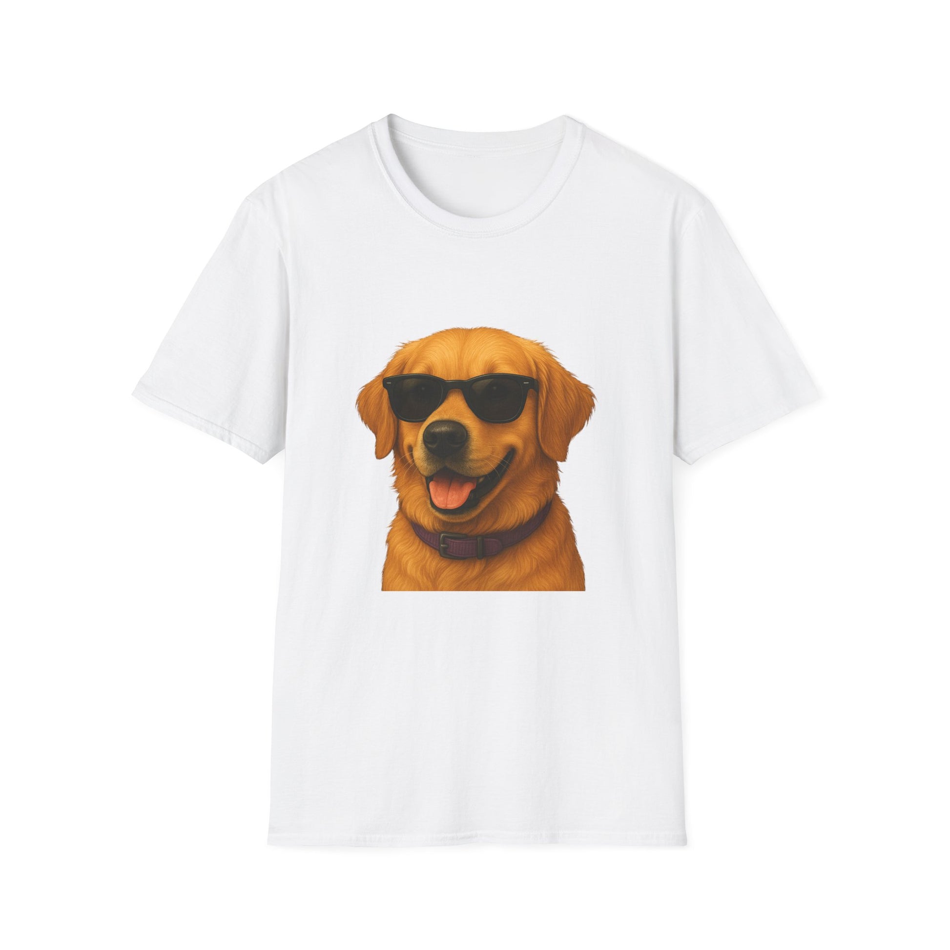 Show your love for golden retrievers with this comfortable unisex t-shirt! Featuring an adorable illustrated Golden Retriever portrait wearing stylish sunglasses, this tee is perfect for dog lovers everywhere.