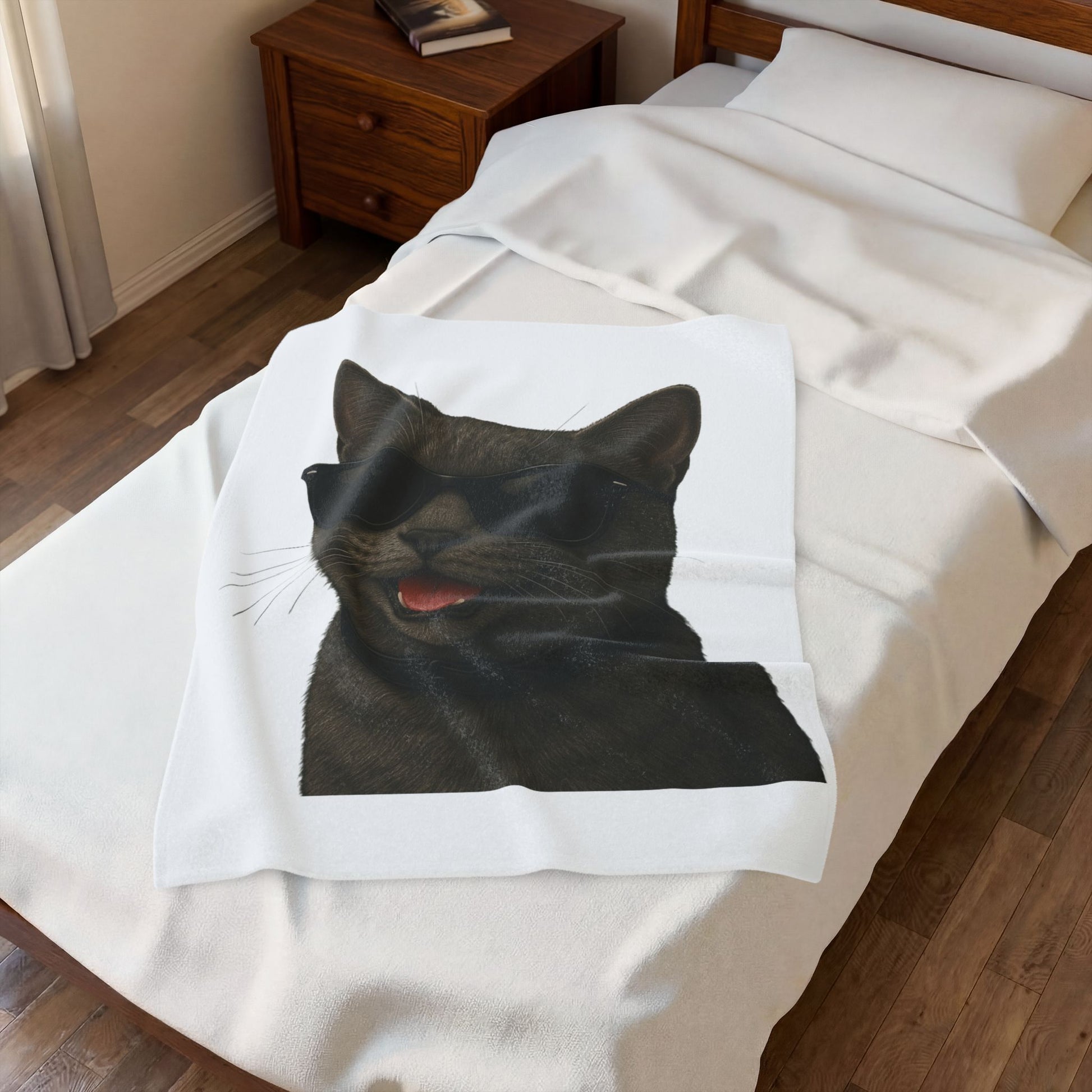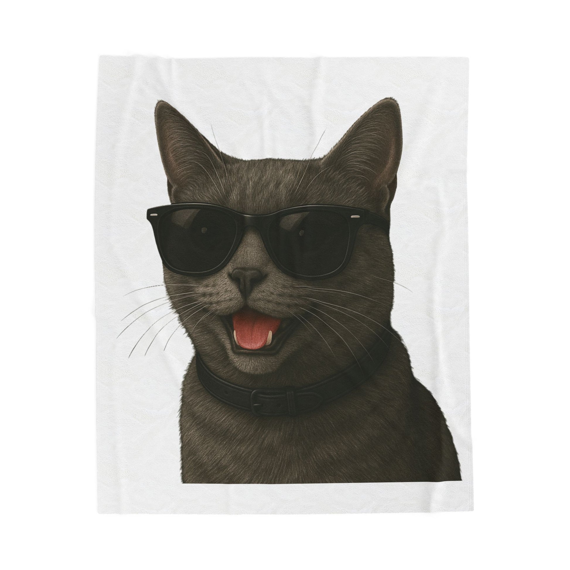 Snuggle up with this cozy Gray Cat sherpa blanket! Featuring a vibrant illustrated Gray Cat portrait wearing cool sunglasses, this blanket combines comfort with cat-lover style.