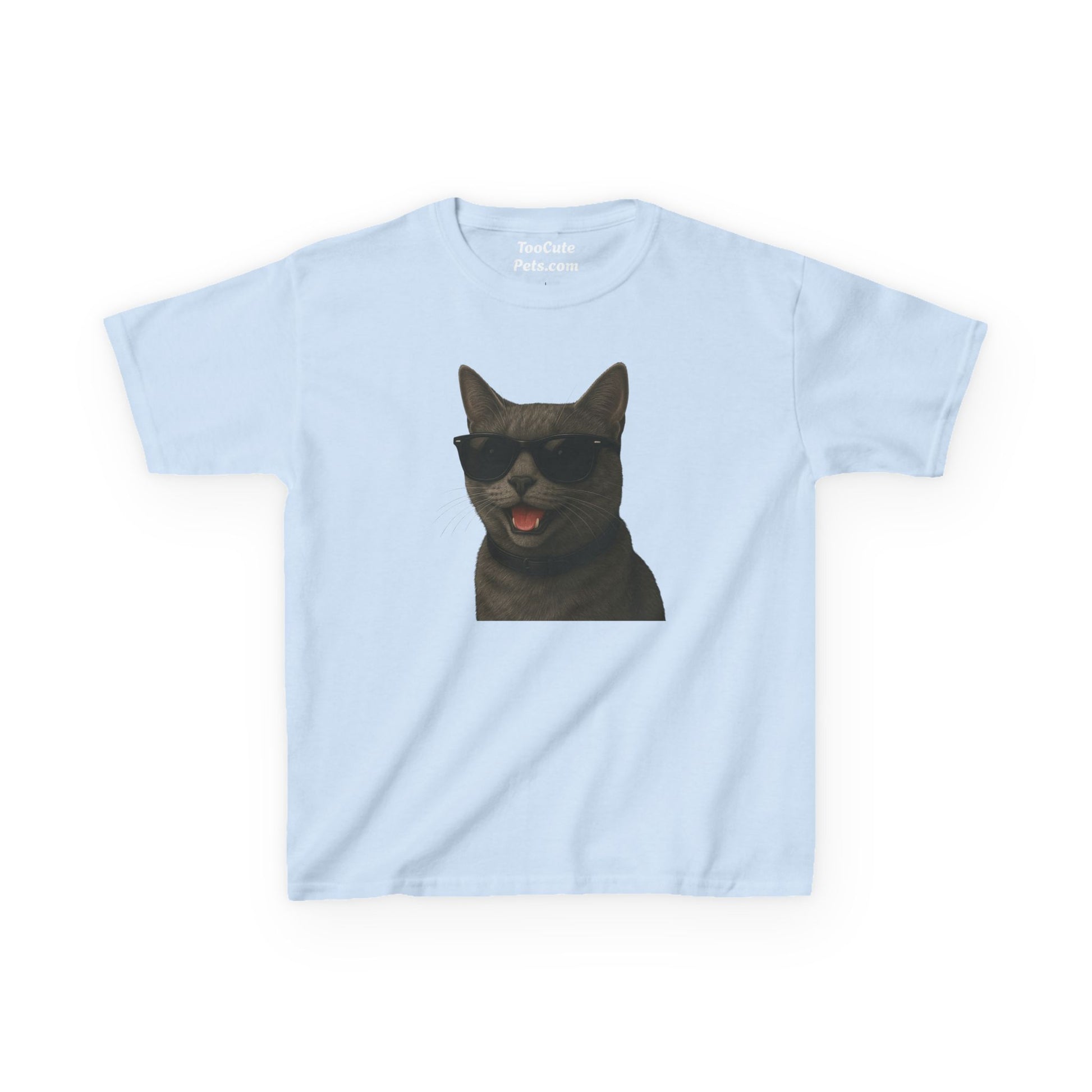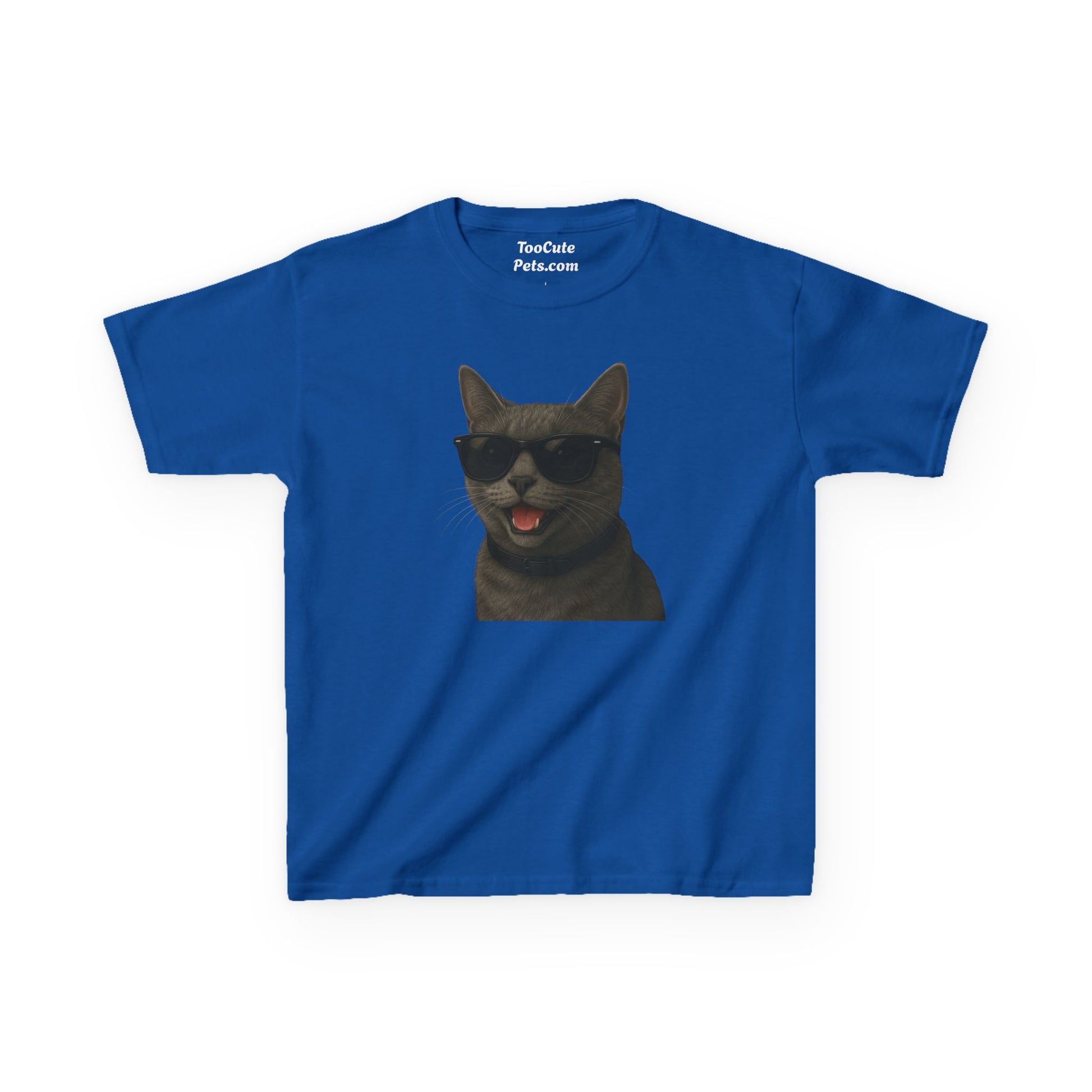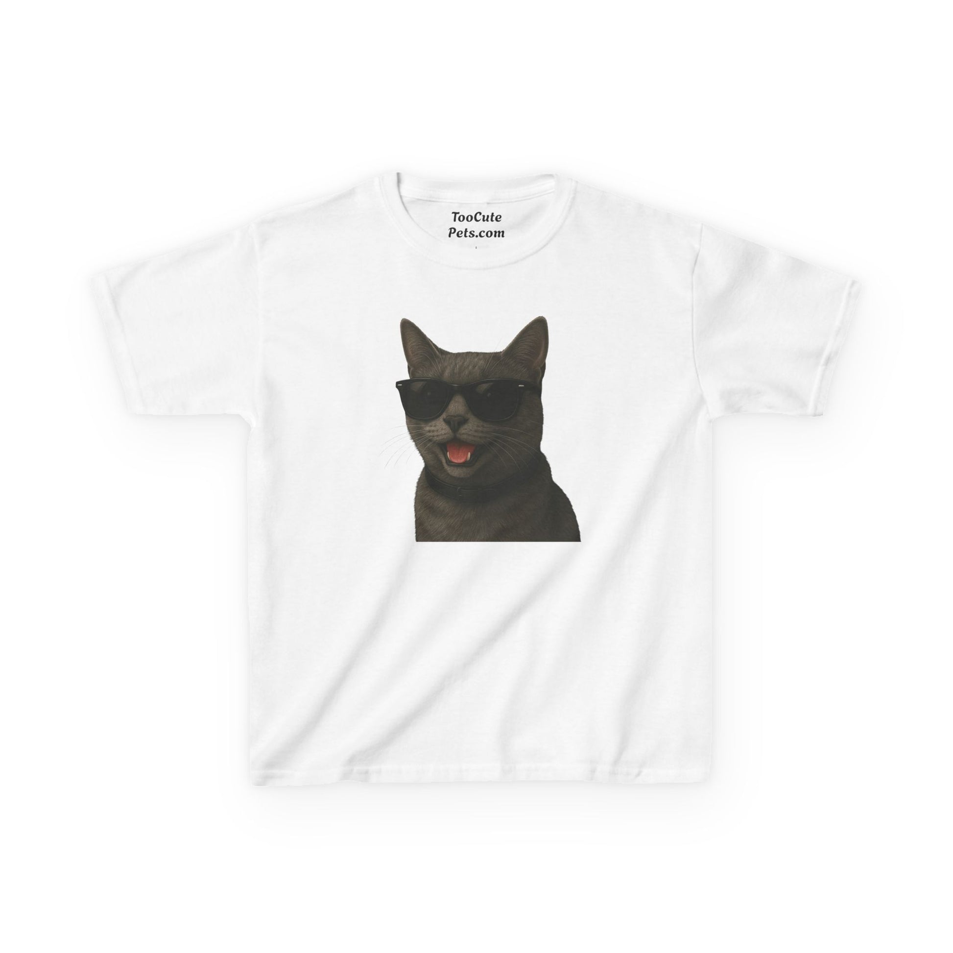 This Kids Tee features a design of a Gray Domestic Shorthaired Cat wearing sunglasses, adding a fun and playful vibe to any child's wardrobe. Perfect for kids who love cats and want to show off their unique style. Ideal for casual wear, playdates, and birthday parties.