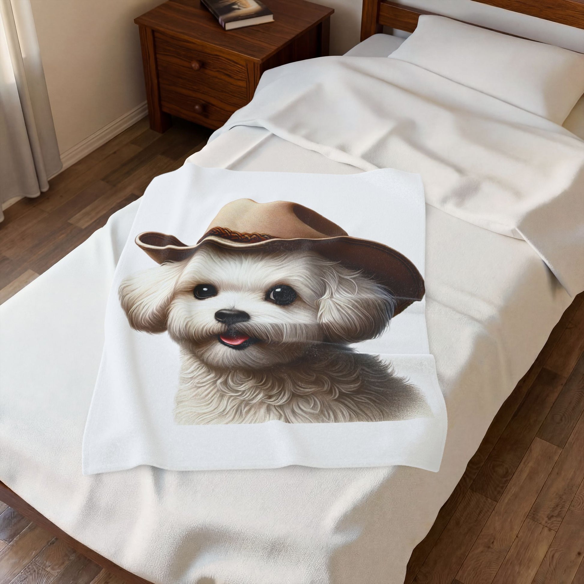 Maltese Wearing a Cowgirl Hat - Sherpa Blanket