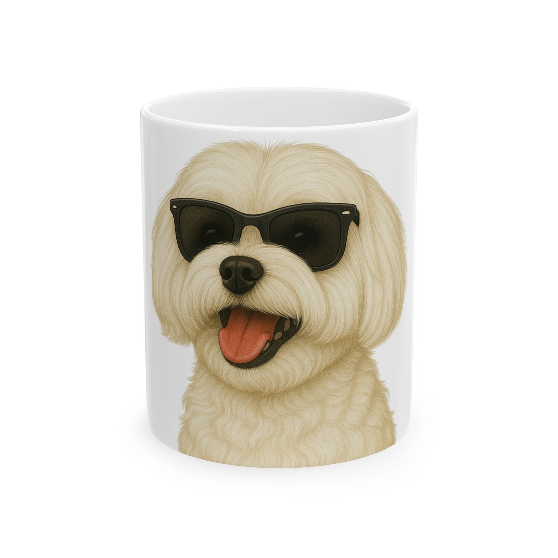 Start your morning with a smile! This adorable ceramic mug features a Maltese wearing stylish sunglasses — perfect for dog lovers who appreciate a touch of humor with their coffee or tea.