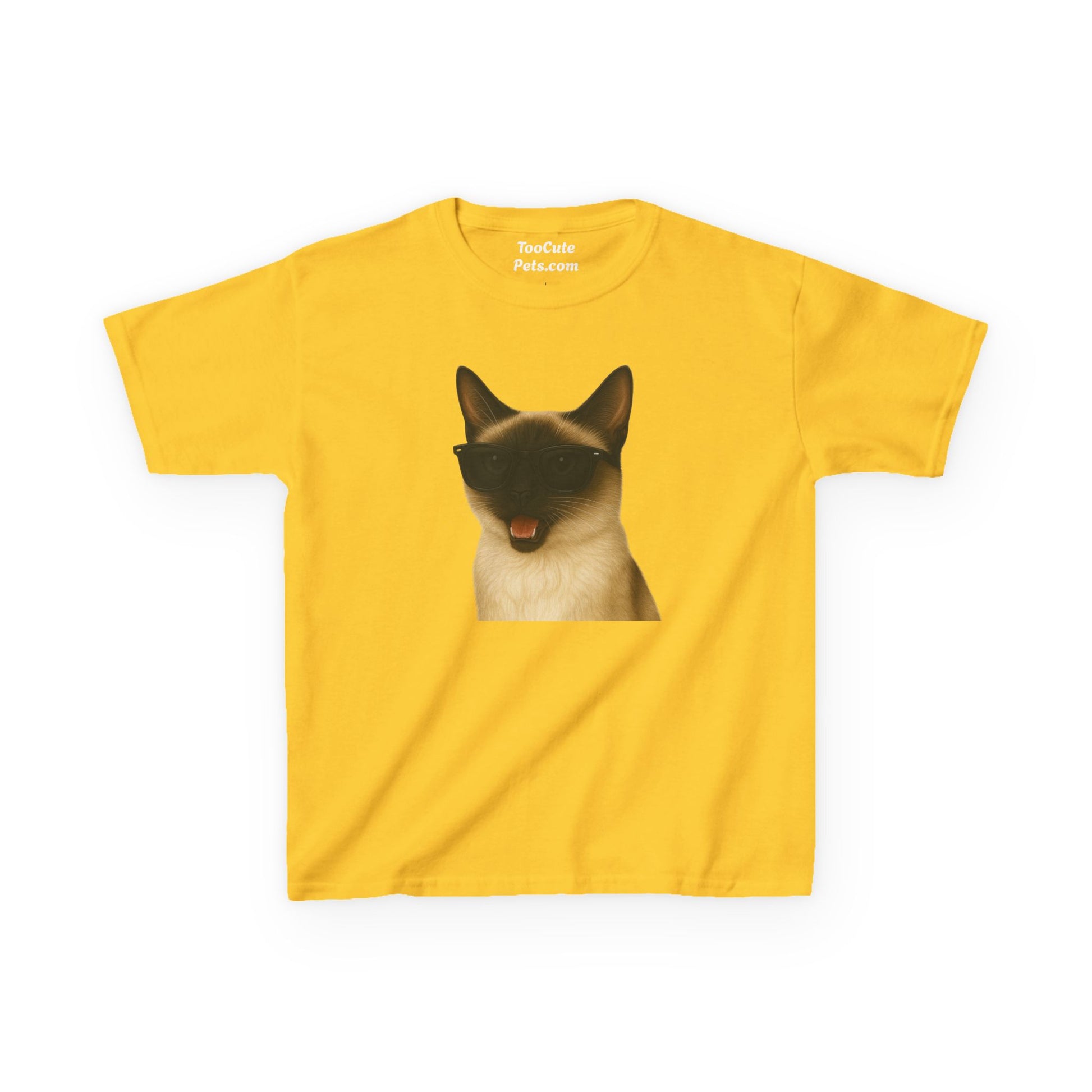 This Kids Tee features a design of a Siamese Cat wearing sunglasses, adding a fun and playful vibe to any child's wardrobe. Perfect for kids who love cats and want to show off their unique style. Ideal for casual wear, playdates, and birthday parties.