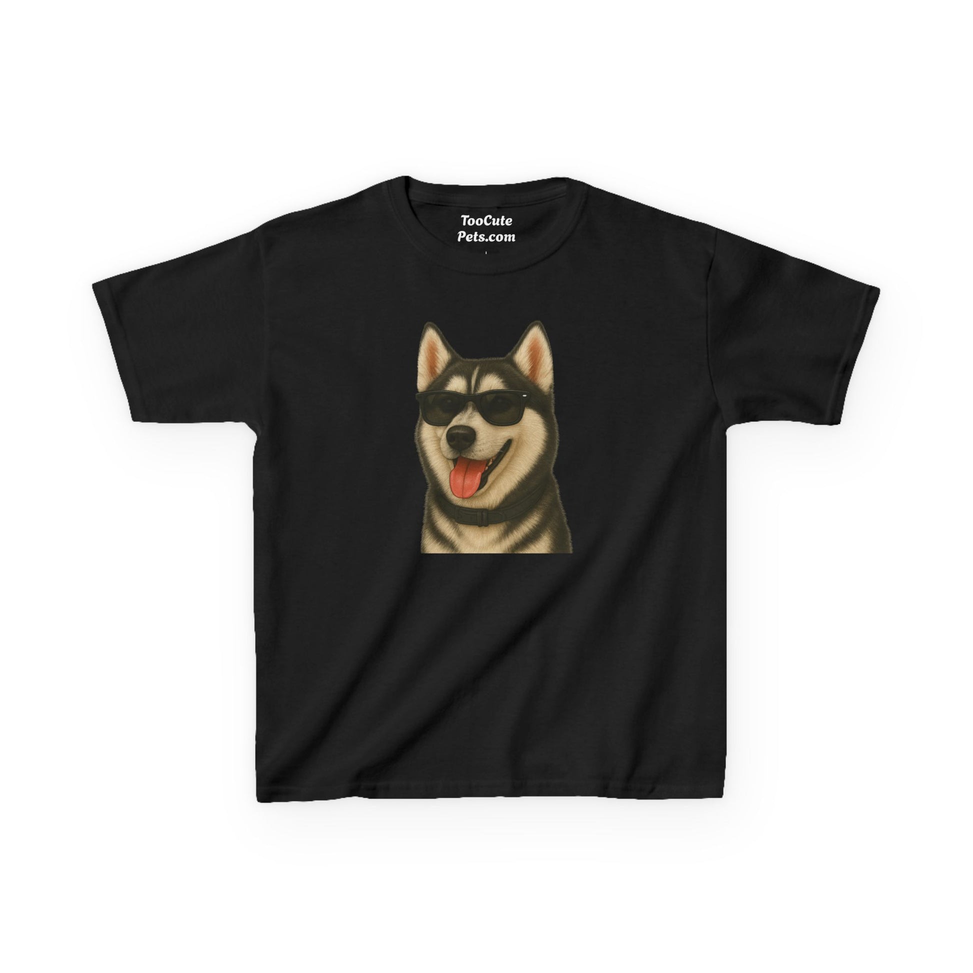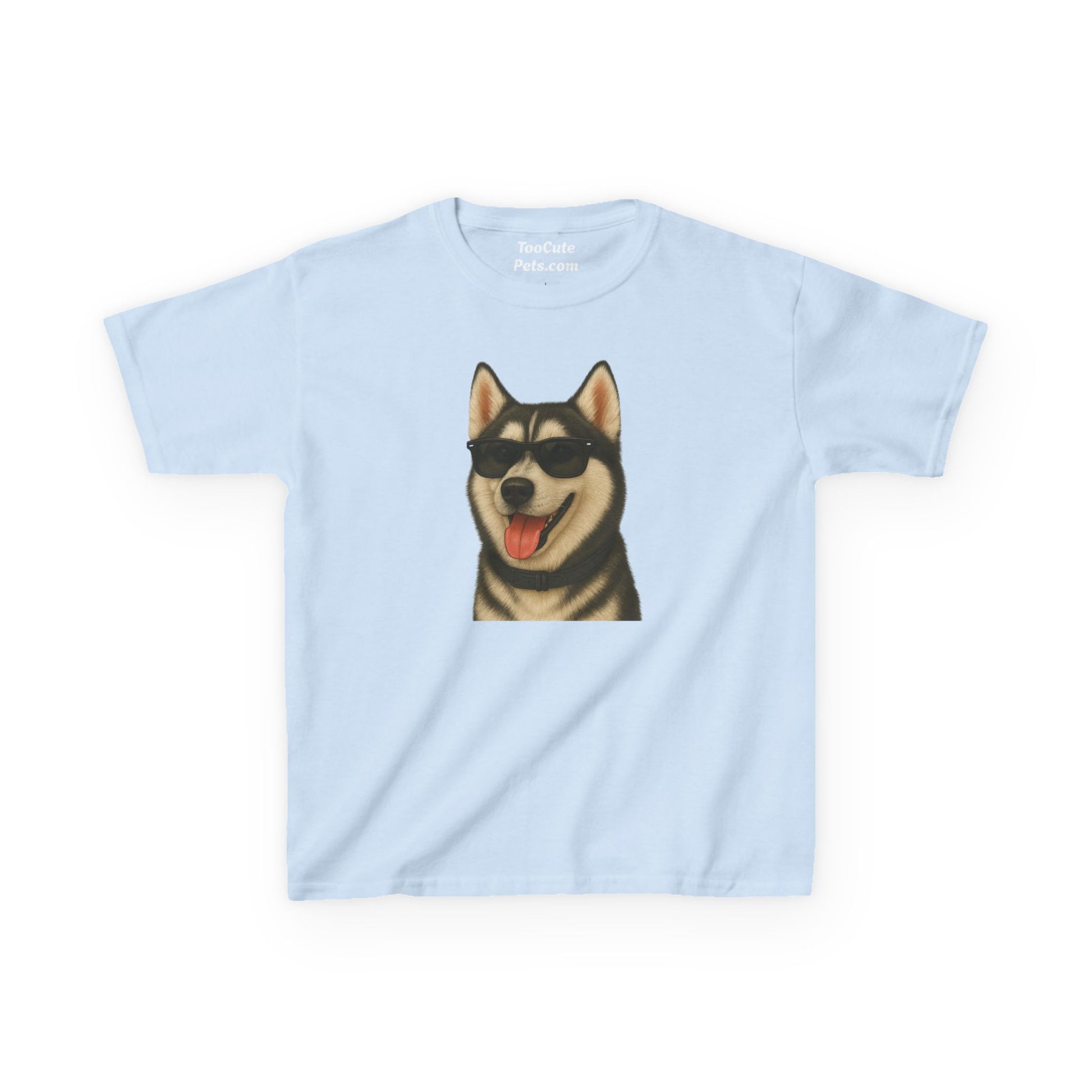 This Siberian Husky T-shirt with a portrait of the dog wearing sunglasses exudes a cool and playful vibe, perfect for casual wear and dog lovers. Ideal for kids, this T-shirt is great for everyday wear, casual outings, and even as a gift for a young dog enthusiast. Relevant for birthdays, holidays, and any casual occasion.