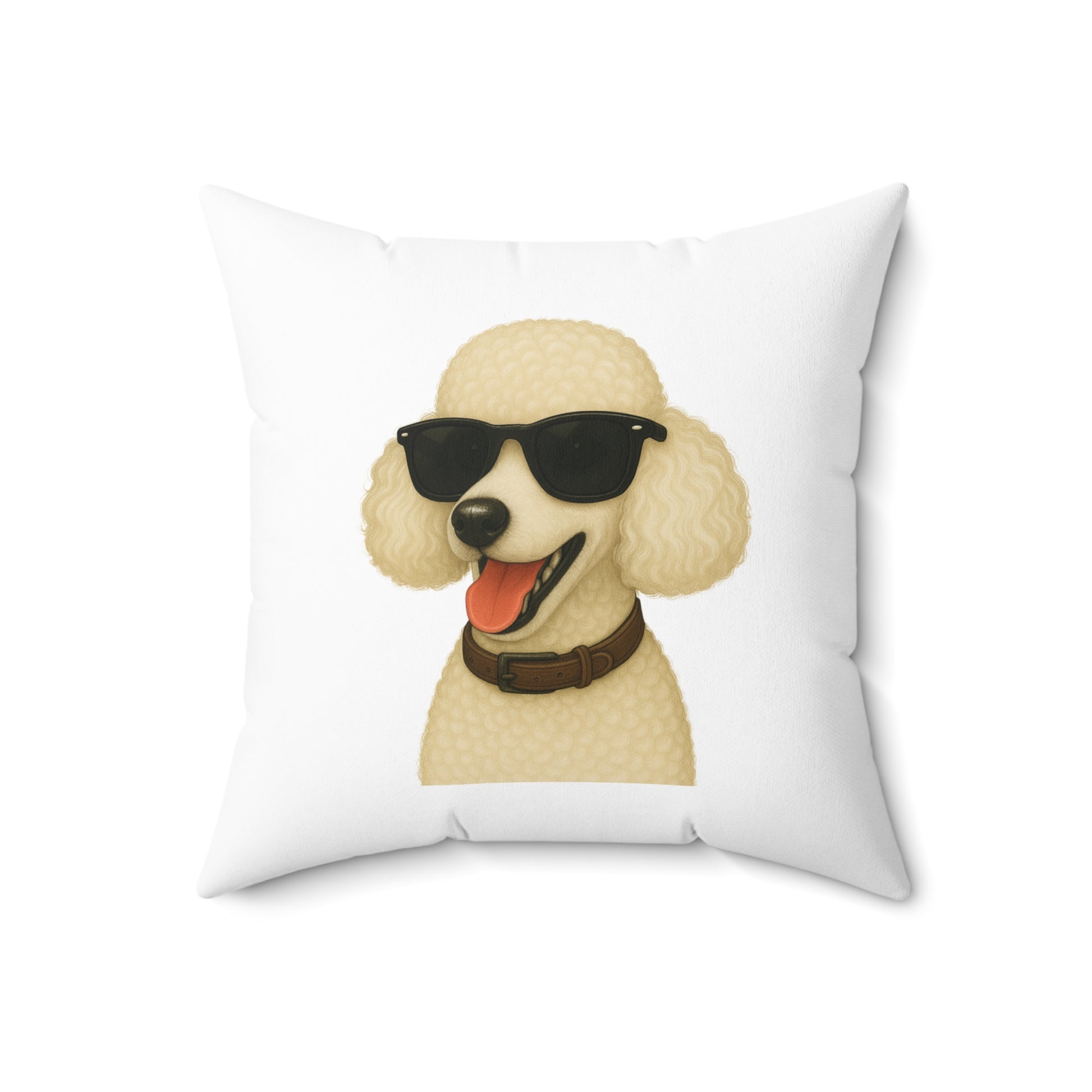 Add some personality to your home with this adorable White Poodle throw pillow! Featuring a fun illustrated White Poodle portrait wearing stylish sunglasses, this pillow is a must-have for dog lovers.